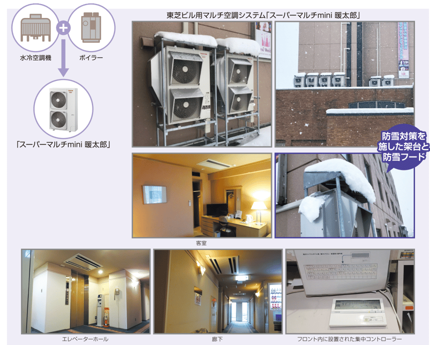 ホテル館内の空調システムとして東芝ビル用マルチ空調システム「スーパーマルチmini 暖太郎」を採用