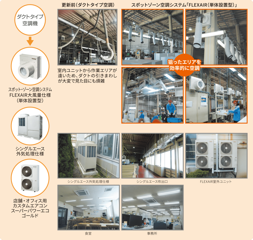 スポット・ゾーン空調システム「FLEXAIR®(単体設置型)」と「シングルエース外気処理仕様」の導入により作業環境改善が可能な空調設備をご提案